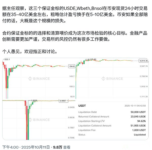 في الوقت نفسه، يشير بعض الناس إلى أن هذا الهبوط ليس سلوكًا بسيطًا في السوق، ولكنه “هجوم نقطة ثابتة” يستغل الثغرات في نظام بينانس وينتج عن فك تثبيت أصول محددة.