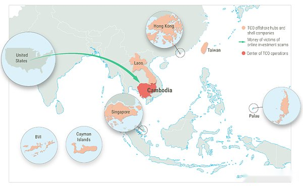شبكة الأمير المجموعة الإجراميةص><ص>يُذكر أن عصابات الاحتيال في جنوب شرق آسيا تجتذب الباحثين عن عمل من أكثر من 70 دولة، مما يجبرهم على العمل مع أشخاص يشاركون بنشاط في الجريمة لتنفيذ عمليات احتيال واسعة النطاق ومعقدة في جميع الولايات القضائية تقريبًا حول العالم.ص><ص>وفي كمبوديا ولاوس وميانمار وحدها، يُعتقد أن القوى العاملة المنخرطة في الجرائم الإلكترونية تجاوزت 350 ألف شخص.وتشير بعض التقديرات إلى أن الإيرادات السنوية لعصابات الاحتيال في جنوب شرق آسيا تتراوح بين 50 مليار دولار و75 مليار دولار.وهذا يجعل الاحتيال عبر الحدود من المرجح أن يصبح النشاط الاقتصادي الأكثر أهمية في منطقة ميكونغ دون الإقليمية في جنوب شرق آسيا – بل إن حجمه يعادل ما يقرب من نصف الناتج المحلي الإجمالي للبلدان المضيفة الرئيسية مجتمعة. ومن بينها، تعد صناعة الاحتيال في كمبوديا مربحة بشكل خاص، حيث يتراوح الدخل السنوي غير القانوني المقدر بين 12.5 مليار دولار أمريكي و19 مليار دولار أمريكي.ص><ص>منذ عام 2015 تقريبًا حتى الوقت الحاضر، قام تشين تشي والمديرون التنفيذيون لمجموعة برينس بتنفيذ الاحتيال في الاستثمار في العملات المشفرة ومخططات الاحتيال الأخرى، والاحتيال على الضحايا في جميع أنحاء العالم واختلاس أموال بمليارات الدولارات.من أجل تنفيذ الخطة المذكورة أعلاه، أصدر تشين تشي والمتآمرون معه تعليمات إلى مجموعة برينس لإنشاء وتشغيل “حدائق احتيال للعمل القسري” في جميع أنحاء كمبوديا، مما أجبر الناس في الحدائق على تنفيذ أنشطة احتيال على نطاق واسع.استخدم تشين تشي والمتآمرون معه نفوذهم السياسي في العديد من البلدان لحماية أنشطتهم الإجرامية ودفعوا رشاوى لموظفين عموميين أجانب للتهرب من إنفاذ القانون.ثم قاموا بعد ذلك بغسل عائدات الاحتيال من خلال وكالات غسيل الأموال المهنية وشبكة الأعمال “الشرعية ظاهريًا” الخاصة بمجموعة برينس، بما في ذلك عمليات المقامرة عبر الإنترنت وتعدين العملات المشفرة.ص><ح2>5. كيف تقوم مجموعات الاحتيال الإلكتروني بعمليات الاحتيال؟