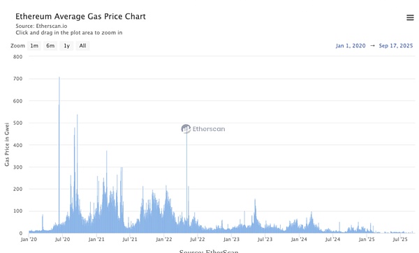 在早期階段,公鏈的吞吐量極其有限,區塊空間是⼀種稀缺資源。以以太坊為例,DeFi Summer 期間,在各類鏈上活動疊加的情況下,DEX 交互的單筆成本常常在 20–50 美元,極端擁堵時的交易成本達到數百美元。到了 NFT 時期,市場對擴容的需求和呼聲更是達到頂峰。