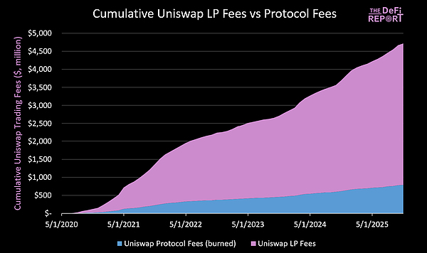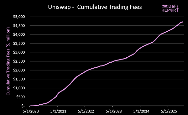 Uniswap 的主要收入來源是其交易業務。自成立以來,該協議已創造了超過 47 億美元的交易手續費收入。