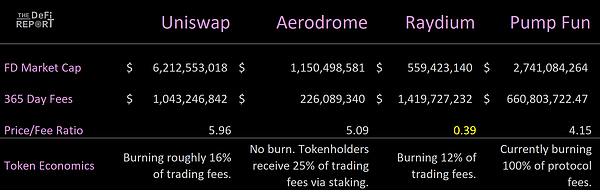 與 Aerodrome(Base)、Raydium(Solana)或 Pump(Solana)相比,與 UNI 持有者一致的擬議變更對 Uniswap 的相對估值沒有產生影響。