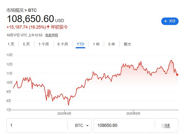 これら2つの指標の同時悪化は市場のリスク回避の高まりに直接つながり、ビットコインの価格支持に厳しい試練を与えた。ビットコイン価格は木曜日に107,600ドルまで下落した。