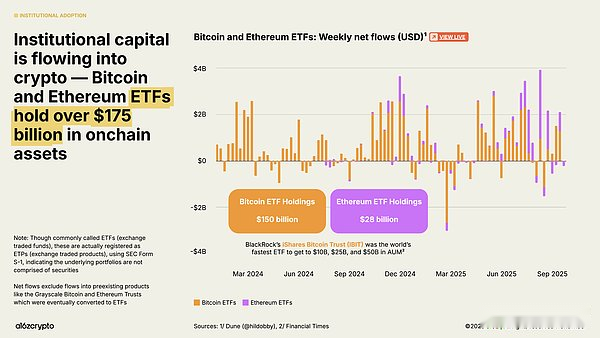 يمكن تسمية عام 2025 بالسنة الأولى للتبني المؤسسي.بعد خمسة أيام فقط من إعلان تقرير “حالة صناعة العملات المشفرة” العام الماضي أن العملات المستقرة قد حققت ملاءمة لسوق المنتجات، أعلنت Stripe عن الاستحواذ على منصة البنية التحتية للعملات المستقرة Bridge، وبالتالي بدء النشر العام للعملات المستقرة من قبل الشركات المالية التقليدية.ص>