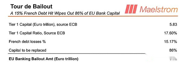 Let’s first look at what impact will the euro financial system if foreign holders holding French assets encounter difficulties.Remember, this “Fugazi” (slang from the U.S. military during the Vietnam War, meaning “too bad to repair”) is a fragmented system.The assets of one entity are often liabilities of another entity.All assets are supported by a thin layer of equity.Therefore, if French assets included in capital in EU financial institutions evaporate, bankruptcy will follow.