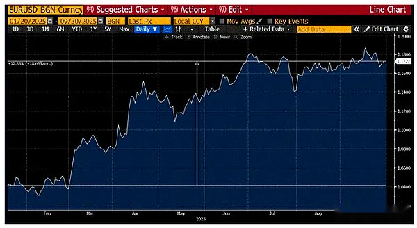 In order to increase U.S. exports at the expense of Germany and other EU countries’ exports, Becent had to significantly weaken the dollar against the euro.Continue to maintain a huge deficit, announce an industrial policy and trigger a surge in bank credit, gold soars, and threaten the Federal Reserve to cut interest rates when all objective indicators indicate that the US economy is strong or even very strong, etc. These policies will weaken the exchange rate of the US dollar against most other fiat currencies, including the euro, when other conditions remain unchanged.Becente is busy devaluing the dollar to enhance the manufacturing recovery of “American rule”, while Lagarde is busy implementing austerity monetary policy to restrain elected politicians of member states who want to spend money to promote populist policies.That’s why the euro has appreciated 12% against the dollar since Trump took office.