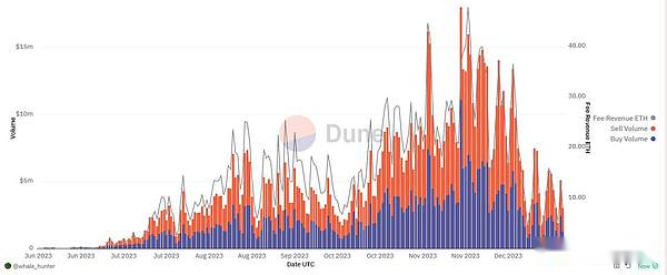 此外,BananaGun官方近期宣布,其協議總交易量已達到驚人的3.88億美金,使其在BOT賽道中的地位穩固為第二名。同時,其代幣鏈上的單日成交量也創下了新高,達到865萬美金,並帶來了28 ETH的手續費收入。為了進一步增強用戶的參與度,BananaGun還計劃將獎勵提升至15%,從而為用戶提供更高的費用回扣。