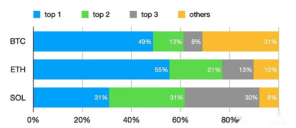 Further analysis of the main holding ratio shows that the largest holder of DAT companies in BTC is MicroStrategy, which accounts for 49%, which is much higher than the second place of 13%.MicroStrategy’s absolute proportion and high BTC volume hide a certain crisis. As a market vane, when it exhibits behaviors or phenomena such as selling Bitcoin or being unable to continue the DAT strategy, it will pose a great threat to the market.The largest holder of ETH is even worse, reaching 55%, but the second largest holder also reaches 21%, and the top three account for 90%. The structure is unbalanced.In terms of SOL, the top three entities each hold an average of 30%, and the market structure is balanced.