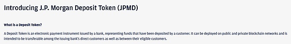 même,Selon le site officiel de JPM Kinexys, déposez des jetonsIl s’agit d’un instrument de paiement électronique émis par une banque et représente les fonds déposés par le client.Elle peut être déployée sur des réseaux blockchain publics ou privés et est transférable entre les clients directs de la banque émettrice et ses clients éligibles.