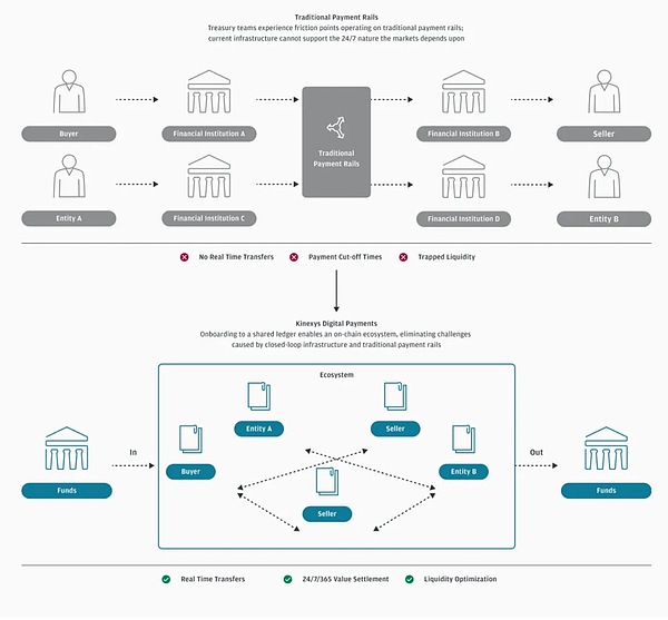 Kinexys Digital Payments de JPMorgan Chase est un exemple frappant de grand livre bancaire unique : ce grand livre est géré par JPMorgan Chase et est conçu pour fournir des canaux de comptabilité et de paiement pour les transferts de solde en dollars américains entre les clients participants de la banque. Un grand livre bancaire unique (tel que Kinexys Digital Payments) peut apporter une plus grande efficacité opérationnelle que les systèmes traditionnels : en prolongeant les heures d’ouverture et en accélérant les transferts, il peut améliorer considérablement l’expérience des flux de capitaux entre régions et entre systèmes, même lorsque les fonds sont répartis entre différents comptes dans la même institution à travers le monde.