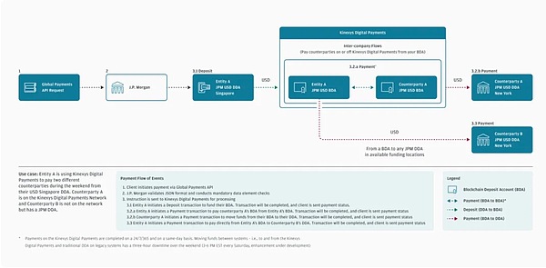 Les paiements transfrontaliers en particulier sont un domaine dans lequel JP Morgan espère bénéficier de manière significative de la « fusion des informations et de la valeur sur un grand livre partagé ».En 2020, les flux de capitaux transfrontaliers mondiaux ont atteint 23 500 milliards de dollars américains, mais ont coûté 120 milliards de dollars américains et ont pris en moyenne 2 à 3 jours pour finaliser leur règlement.JP Morgan estime que l’adoption d’une monnaie numérique de banque centrale (CBDC) multidevises pourrait réduire les coûts de 80 %, à environ 20 milliards de dollars, tandis que les jetons de dépôt pourraient offrir des avantages similaires en réduisant les frais, en raccourcissant les délais de règlement, en réduisant le risque de contrepartie et en permettant des transferts de fonds plus directs.