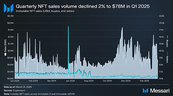 El mercado primero se recuperó rápidamente en verano y luego se enfrió: según las estadísticas de CryptoSlam, las ventas en julio de 2025 alcanzaron los 574 millones de dólares (el segundo más alto del año). En septiembre, afectadas por la caída del apetito por el riesgo en el mercado general de cifrado, las ventas cayeron alrededor de un 25% mes a mes.