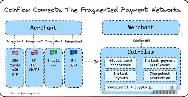 However, despiteThe nature of finance drives the payment system to pursue efficiency, but it also introduces its own disorder, resulting in a disorganized payment network., each network adds a layer of integration complexity without solving fundamental issues such as settlement speed, fragmentation or risk management.As a result, stablecoins and Coinflow came into being.