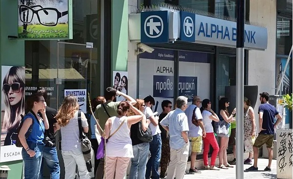 Le monde a observé la crise de la dette grecque en juillet 2015, alors que des photos et des vidéos de citoyens grecs faisant la queue aux distributeurs automatiques de toute la Grèce pour retirer leurs économies durement gagnées sont devenues virales.