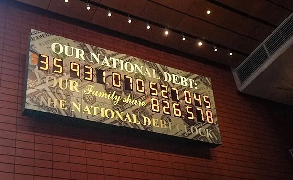 L’horloge de la dette nationale des États-Unis, qui suit en temps réel la dette nationale américaine et sa part dans les ménages américains, est un rappel brutal du fardeau budgétaire croissant de l’Amérique.(Crédit photo : Selcuk Acar/Anadolu via Getty Images)
