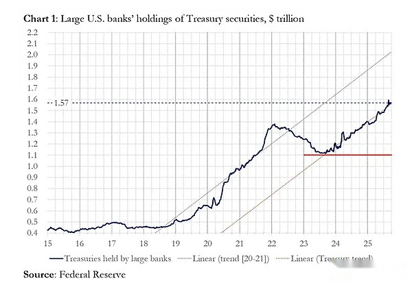 As shown in the figure, in fiscal year 2025, the four major banks purchased approximately $300 billion in Treasury bonds.In the same fiscal year, the Treasury Department issued $1.992 billion in Treasury bonds.While this group is undoubtedly an important buyer of Treasury bonds, they are not the last marginal buyers.
