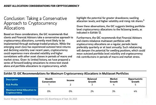 «La Comisión Global de Inversiones Global de $ 1.3 billones de Morgan Stanley recomienda asignar el 2-4% de su cartera de clientes a las criptomonedas y dice que Bitcoin es un activo escaso que rivaliza con el oro digital».