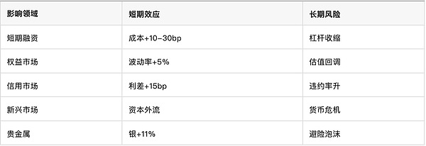 <سبان ليف = "">وتحمل تشديد عمليات إعادة الشراء وطأة تكاليف التمويل قصير الأجل التي ارتفعت بمقدار 10 إلى 30 نقطة أساس، مما أدى إلى تضخيم مخاطر المعاملات ذات الرفع المالي. وصل حجم التداول الأساسي (SOFR وEFFR للمراجحة) إلى عشرات المليارات من الدولارات، وتوسع الفارق إلى 10 نقاط أساس، وارتفع حجم التداول.وفي سوق الائتمان، ارتفعت أسعار الفائدة على قروض الشركات بمقدار 15 نقطة أساس، وتباطأ إصدار السندات غير المرغوب فيها.