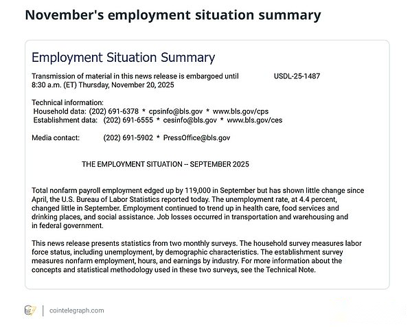 بعد أن وصلت إلى مستويات مرتفعة جديدة في عام 2025، كافحت عملة البيتكوين للحفاظ على مكاسبها لعدة أسابيع في أواخر نوفمبر. وفي الوقت نفسه، بدأت بيانات سوق العمل الأميركية تصدر تحذيراً آخر، ليس انخفاضاً حاداً في الوظائف، بل تباطؤاً كبيراً.ص>