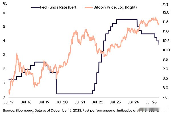 マクロ市場の好調な状況により、2026 年のコイン価格の下値リスクも限定される可能性があります。スパン>過去2回の循環ピークはFRBが利上げする前に発生した(図表7)。対照的に、FRBは2025年に3回利下げしており、来年も利下げを続けると予想されている。スパン>ジェローム・パウエルの後任FRB議長となる可能性が高いケビン・ハセット氏は最近、「フェイス・ザ・ネイション」とのインタビューで、「米国民はトランプ大統領が、より安価な自動車ローンやより便利な住宅ローンを低金利で利用できるよう支援してくれる人物を選ぶことを楽しみにしている」と述べた。全体として、経済成長とFRBの全般的に支援的な政策は、投資家の好ましいリスク選好と仮想通貨を含むリスク資産の潜在的な利益と一致するはずです。