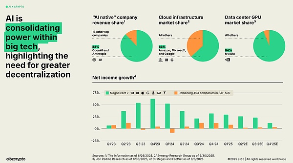 これはまさに、暗号化 + AI の話と a16z の最新の暗号化ステータス レポートで指摘されている集中化の懸念です。自由放任主義の AI は、大きなモデル、大きなクラスター、大きなクラウドなど、集中化される傾向があります。対照的に、ブロックチェーンは、分散した小規模な貢献を多数集約し、それらに流動的な世界市場へのアクセスを与えることに優れています。