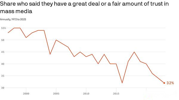 このモデルは持続不可能であり、誰もが心の底ではそれを知っています。私たちは、正確さよりもエンゲージメントを重視する情報エコシステムを構築しており、正しいことよりも大きな声を持つことが重要です。ソーシャルメディアが問題をさらに悪化させ、事実が正しいかどうかに関係なく、最もホットな主張が勝つようになりました。最もファンが多い人がエキスパートとなり、最も多くの「いいね!」を獲得できる人がいわゆるエキスパートとなります。