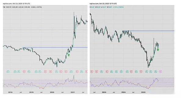 次に、以下の比較を見てください。左は 2020 年、右は 2025 年の同時期です。控えめに言っても、この 2 つは非常によく似ています。
