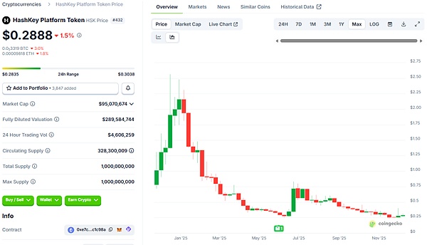 對了,Hashkey之前還發行過$HSK代幣,號稱會拿出利潤的20%回購,現在因為沒有盈利所以沒有回購過。