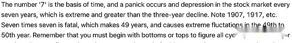 La siguiente imagen es una de las leyes del ciclo de Gann y explica por qué el número 7 es tan importante en el mercado.
