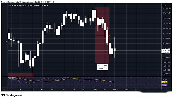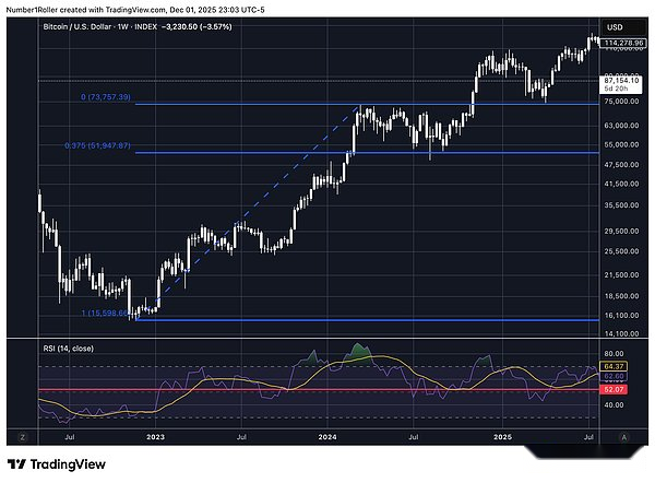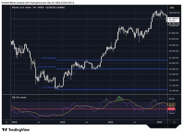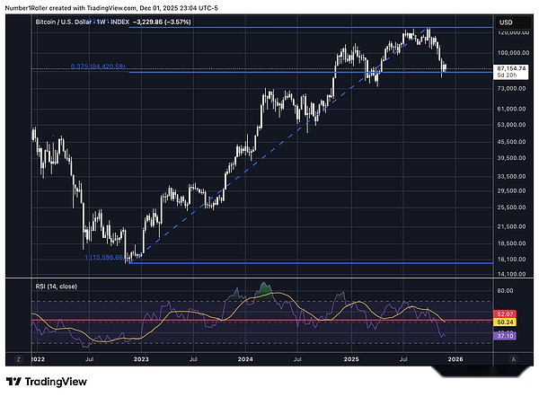 Cada vez que el precio toca este nivel desde un máximo significativo, eventualmente toca fondo. Esta vez, el nivel apareció en 84.420 y el precio se estabilizó y cerró por encima de sus niveles en el gráfico semanal.