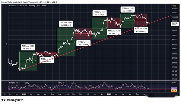 Si observamos la duración de los retrocesos en este ciclo, se han ido acortando cada vez más, lo que sugiere que la tendencia no indica un cambio y que el mercado en realidad está mostrando un fuerte impulso.