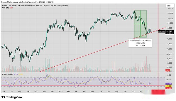 Al medir los retrocesos de precios desde los mínimos del ciclo, hay un nivel de soporte clave que se ha mantenido constante durante todo el ciclo y desempeña un papel importante en cada mínimo.