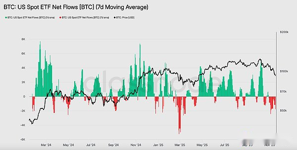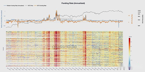 Futures open interest continued to trend lower this week, falling in tandem with prices, indicating a continued decline in speculative activity.Instead of taking advantage of the dip, traders systematically liquidated their positions, resulting in derivatives market positions being significantly lower than previous declines.This lack of leverage expansion highlights the cautious attitude of market participants and is consistent with the general trend of weakening demand from risk-appetite groups.
