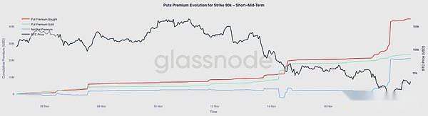 Continuing with the overall fund flow data, the put premium at the 90K strike price shows that protective demand is accelerating as prices weaken.The net put premium on this strike remained relatively balanced over the past two weeks until Bitcoin fell below the $93,000 mark.Once that level fell below, traders increased their selling of these puts, causing option premiums at the 90K strike price to rise significantly.