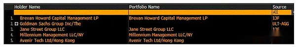 The above are the five largest holders of IBIT US.They are all large hedge funds or investment banks focused on proprietary trading, such as Goldman Sachs.