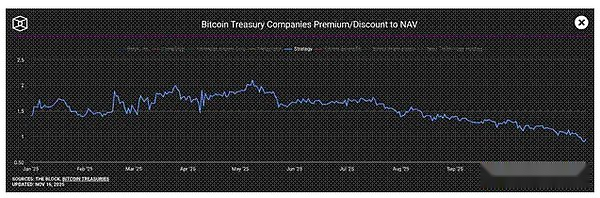 Digital Asset Treasury (DAT) companies offer institutional investors another way to gain exposure to Bitcoin.Strategy (ticker: MSTR US) is the DAT holding the largest number of Bitcoins.When its stock trades at a much higher price than its Bitcoin holdings, known as mNAV, the company can acquire Bitcoin at a lower cost through stock issuances and other financing methods.As the premium turns into a discount, the rate at which Strategy acquires Bitcoin decreases.