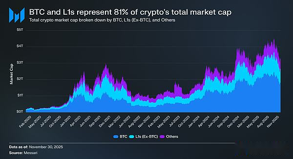 Looking forward, we do not expect this trend to reverse in 2026 and beyond.With few exceptions, we expect L1 altcoin assets to continue losing market share to Bitcoin.Their valuations are primarily driven by expectations of future currency premiums, and these valuations will steadily decline as the market increasingly recognizes Bitcoin as the most competitive of all cryptocurrencies.Although Bitcoin will face challenges in the coming years, these issues are still unclear and are affected by many unknown factors, which are not enough to constitute substantial support for the current currency premium of other L1 assets.