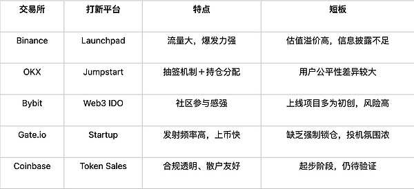 Coinbase’s latest move is not an isolated case.In fact, in recent years, most mainstream exchanges have continued to increase their efforts on the “token launch” track, gradually building a “launch closed loop” from project screening and financing design to transaction launch and ecological support.Binance Launchpad, OKX Jumpstart, Bybit IDO, etc. that we often hear are all representatives of this trend.