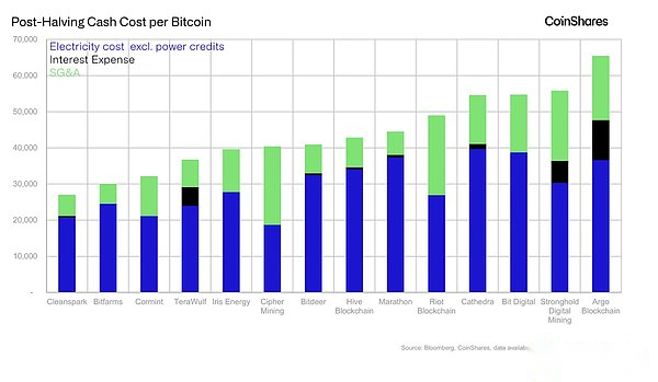 In this research article, we estimate the weighted average of production costs and cash costs in the third quarter of 2023. Each bitcoin is about $ 16,800 and $ 25,000, respectively.After the estimated half -half incident in April 2024, these costs are likely to decrease to $ 29,300 and $ 38,100, respectively.Due to its efficient cost structure and long runway, Riot looks most capable of cope with these changes.Our analysis of the financial statements of listing and private miners assumes that the price of Bitcoin is $ 40,000, and most of the pain that miners will face may stem from bloated sales, general and management costs (SG & AMP; A) costs.
