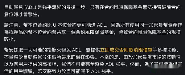 Regarding the core of ADL, let me directly post Binance’s discussion on ADL: