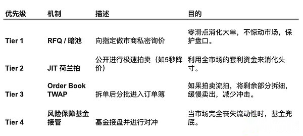Speed and determinism: On L1 chains, computing resources are expensive.Prorating deductions for thousands of users requires extensive computation and state updates, potentially causing block delays.The “greedy queue” only needs to sort and cut off the head, which has low computational complexity and extremely fast execution speed (millisecond level).When markets crash, speed is of the essence.