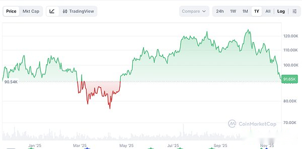 At the epicenter of the market turmoil in the past few weeks, Bitcoin’s price and sentiment have experienced a rare and huge divergence: the price remains firmly in the historically high range above $90,000, but market psychology has fallen into the abyss of “extreme fear.”The Fear and Greed Index briefly hit 16 points, the coldest sentiment reading since the global pandemic collapsed in March 2020, and even with a slight recent recovery, it is struggling in the 12–18 range.The positive narrative of Bitcoin on social media has simultaneously declined, quickly turning from the previous firm optimism to complaints, anger and blame-shifting.This kind of dislocation is not accidental, it often appears in the middle and late stages of bull markets: players who entered the market early have already accumulated huge floating profits, and they choose to settle down once there is a macroeconomic disturbance; while the funds chasing higher in the later period are quickly locked up in the short-term fluctuations, and the floating loss sentiment further amplifies the panic and disappointment in the market.Bitcoin is currently about US$92,000, which is almost the same as the beginning of the year (about US$90,500). After experiencing a sharp rise and deep correction throughout the year, it has returned to near the starting point, showing a trend of “high fluctuations and staying put”.