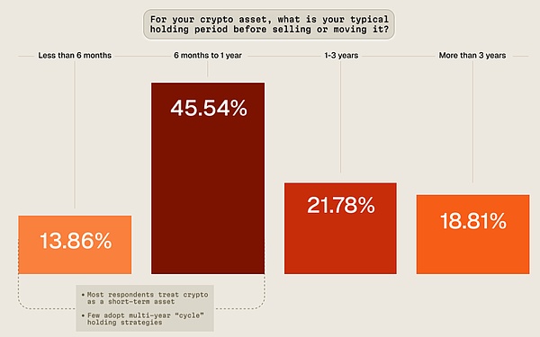 La mayoría de los encuestados tienen un período de tenencia corto para los criptoactivos:
