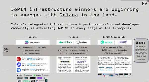 也因此,DePIN赛道下面,大家在供给端的热情是高涨的。 其实Web2已经为“重新分配”做了很久的积淀,只是这次,直接去掉中介。 目前已有近千个DePIN项目,尤其是Solana生态,据Messari统计,Solana生态在DePIN基础设施处于领先地位,这是由于Solana公链具有较高的基础设施集成性和性能。在地区分布上,预计多个前10名的 DePIN 将在2024年至2025年来自亚洲。