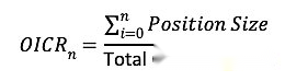 La OICR mide el interés abierto total de las principales entidades comerciales (por ejemplo, las 5 o 10 cuentas principales) como proporción del OI total de ese contrato.