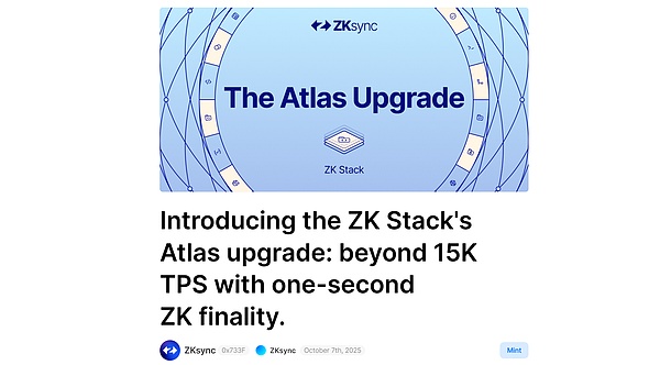 In this context, ZKsync is becoming one of the earliest practitioners. Its founder Alex said that with the completion of the Atlas upgrade, ZKsync has truly achieved verification integration with the Ethereum main network – the operating rhythm, confirmation speed and liquidity of the two are almost completely synchronized.