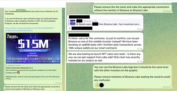 Binance Labs said that before the Skyark Chronicles team PR did not know this round of financing of $ 15 million, and would mention Binance Labs led, and then the project party deleted and corrected it, but the project party only deleted Twitter without it.Clarifying the facts so that users are looking for currency to confirm the investment information, so Binance Labs clarifies unilaterally.