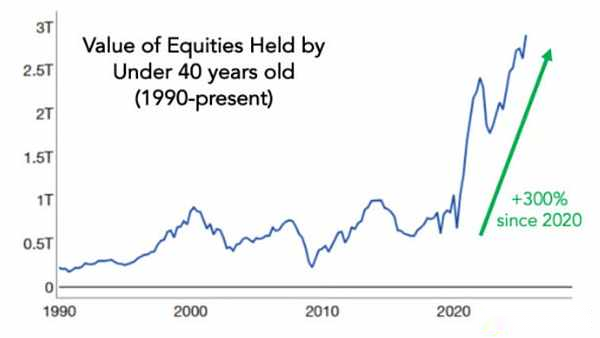 We have moved from housing as our largest investment to the stock market.Just look at the growth in stock holdings among people under 40: