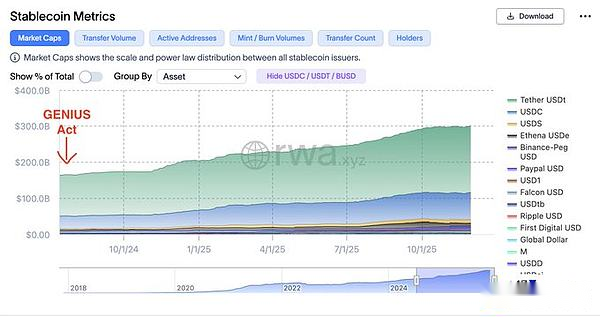 Das institutionelle Interesse und die Beteiligung an Stablecoin-Zahlungen stiegen im Zuge des Genius Act stark an und wurden zu einem der Haupttreiber für die zunehmende Akzeptanz.