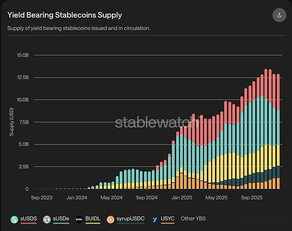 Das Gesamtangebot an YBS hat sich in diesem Jahr auf 12,5 Milliarden US-Dollar verdoppelt, was unter anderem auf BlackRock BUIDL, Ethena und sUSDs zurückzuführen ist.Während einige aktuelle Sicherheitsvorfälle wie Stream Finance die Marktstimmung gedämpft haben, bleiben Stablecoins eines der wenigen Unternehmen mit nachhaltigem Wachstum in der Kryptobranche.