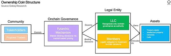 Las monedas de propiedad representan una reestructuración fundamental del diseño organizacional en cadena, con el objetivo de integrar los derechos económicos, legales y de gobernanza en un marco exigible.A diferencia de los tokens de gobernanza tradicionales, que confieren influencia pero no control o responsabilidad, las monedas de propiedad incorporan membresía exigible, derechos de toma de decisiones y riesgo económico directamente en la estructura en cadena de la organización.